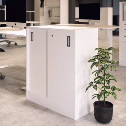 Smidig förvaring på kontoret Med Modea får du en smidig förvaringslösning i prisvärd design med tålig laminat som enkelt går att torka av med fuktad trasa. Tack vare luckorna kan du gömma undan kontorsmaterialet vilket ger ett städat uttryck, särskilt i öppna kontorslandskap. Spara plats med skjutdörrar och infällda handtag Tack vare de praktiska skjutdörrarna passar Modea utmärkt i mindre kontorsrum och mötesrum där du behöver spara in på golvyta. Även de infällda handtagen bidrar till skåpets slanka utseende samtidigt som de gör skåpet enkelt att öppna och stänga med sin lättfattliga design. Lås in känsligt arbetsmaterial Modea kommer utrustad med nyckellås och låter dig därmed låsa in känsliga dokument och personliga tillhörigheter. Du behöver därmed inte vara rädd för att lämna dina saker i skåpet under natten, eller vid tillställningar och event på kontoret. Specifikation Infällda handtag. Låsbar – 2 nycklar inkluderat. Levereras omonterad.Modea är en genomtänkt kollektion kontorsförvaring som förenar stilren design med hög funktionalitet. Ett mångsidigt och prisvärt alternativ för det moderna kontoret! Slitstarkt och lättskött. Garanterar säker förvaring med nyckellås. Stilren och tidlös design. Alltid 10 års garanti.
