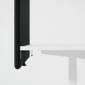 Denna bordsskärm fästs smidigt direkt på skrivbordet med hjälp av de medföljande svarta skruvbeslagen. Konstruktionen är stabil utan att skada bordsskivan, samtidigt som skärmen enkelt kan flyttas vid behov. En praktisk lösning för att skapa en mer ergonomisk och avskild arbetsyta.