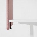 Denna bordsskärm fästs smidigt direkt på skrivbordet med hjälp av de medföljande svarta skruvbeslagen. Konstruktionen är stabil utan att skada bordsskivan, samtidigt som skärmen enkelt kan flyttas vid behov. En praktisk lösning för att skapa en mer ergonomisk och avskild arbetsyta.