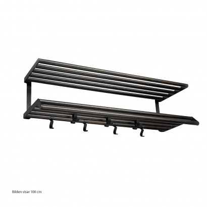 Observera att alla produktbilder visar hyllan med en bredd på 100 samt 120 cm. Antalet ankarkrokar varierar med bredden. Passar in överallt Classic är en flexibel hatthylla som finns i flera bredder och olika utföranden med sidofästen, hyllplan, klädstång och ankarkrokar. Designen gör den lika självklar i små som stora hallar, där den smälter in och kompletterar rummets inredning oavsett stil. Antal ankarkrokar per bredd: 40 samt 60 cm - 2 st krokar 80 cm - 3 st krokar 100 cm - 4 st krokar 120 cm - 5 st krokar.Classic är en tidlös hatthylla med mjuka former, formgiven av Gunnar Bolin på 1950-talet. Med sin retrokänsla blir Classic en fin inredningsdetalj i hall och entré. Smidiga ankarkrokar (antalet varierar med hyllans bredd). Klädstång för upphängning med galge. Två praktiska hyllplan i stål. Tidlös design från 1950-talet.