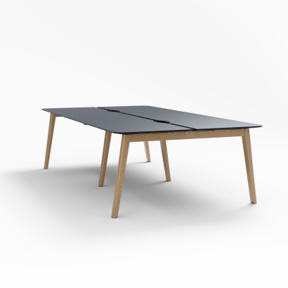 Med fyra stycken arbetsplatser i ett Nova U är en stilren lösning som samlar fyra arbetsplatser i ett och samma bord. Färre bordsben och stativ skapar en öppen, luftig miljö och ger arbetsytan en enhetlig känsla. Utrymme för kabelhantering håller bordet rent och prydligt Bordsskivorna kommer med utsågat utrymme för kabelhantering som du enkelt når via bordets mitt. Tack vare detta håller du bordet fritt från lösa sladdar och eluttag som annars kan göra att bordet känns stökigt. Anpassa bordet efter teamets arbetssätt Med detta bord kan teamet sitta nära och enkelt samarbeta med varandra, eller välja att jobba mer avskilt genom att addera bordsskärmar. Mellanrummet mellan bordsskivorna passar perfekt för att montera en bordsskärm och på så sätt kunna jobba mer i lugn och ro. Specifikation 25 mm MFC (melamin) med 2 mm ABS-kant. Underrede i pulverlackerad metall. Plastfötter med höjdutjämning (+10 mm).Nova U är ett smart skrivbordssystem som rymmer fyra arbetsplatser – perfekt för öppna kontorslandskap. Addera bordsskärmar för att skapa mer avskildhet och fokus. Arbetsplatser för 4 personer. Förberett för smidig och diskret kabelhantering. Enkelt att fästa bordsskärmar för avskildhet. Slitstarka material och stilren design.