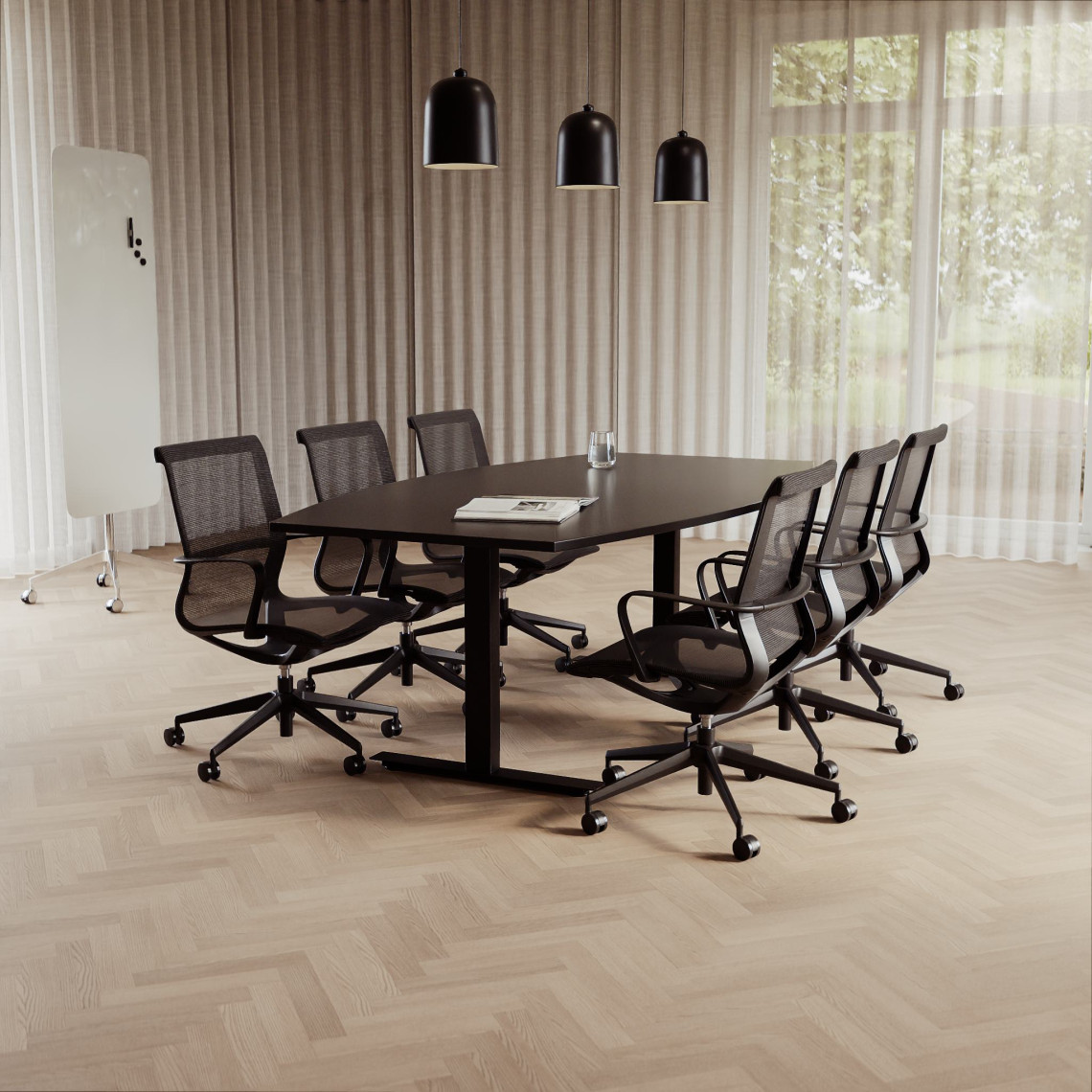 En komplett konferensgrupp designad för det moderna kontoret. Med sex bekväma Ergo 285-stolar och det flexibla mötesbordet Agenda garanterar du effektiva möten.