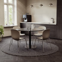 Ett matbord med rund bordsskiva och smidigt pelarstativ – perfekt för lunchrum och matsal. Bordets stilrena design smälter in i många olika miljöer och inredningsstilar.