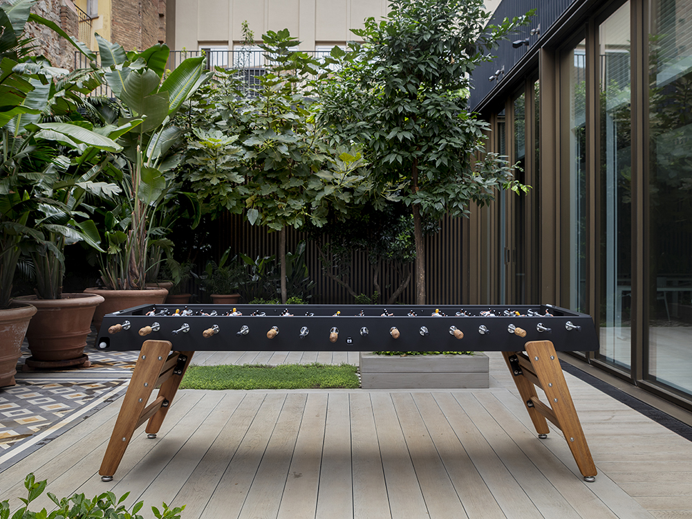 Tack vare sin tåliga konstruktion i stål, högtryckslaminat och behandlat irokoträ står RS Max lika bra inne i kontorets lunchrum eller loungeyta, som ute på terrassen eller innergården. Detta ger dig stor frihet att placera ditt fotbollsspel precis där du vill ha det, ute som inne!
